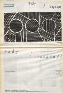Since its inception in 1990, the Movement Research Performance Journal has fostered the evolution of written and graphic languages that contemplate current issues of dance and performance. Created by and for artists, the journal provides a unique forum for critical, rigorous, and creative exploration of the politics of performance, and seeks to address a multi-disciplinary readership. The journal focuses on artists’ of-the-moment concerns, with past issues exploring topics related to gender and sexuality, environments and eco-activism, critical approaches to race and ethnicity, technology and multimedia, Indigenous performance and settler colonial legacies, private property and neoliberal individualism, as well as tactics of liberation and revolt.